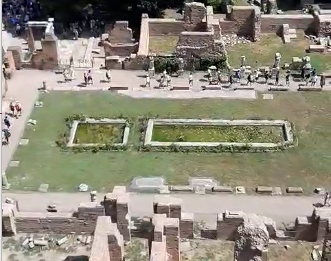下に見えているのはヴェスタの巫女の修道院があったところです。長方形の中庭を囲むようにして、純潔を神にささげたという聖火を見守る巫女たちが住んでいたヴェスタの家です。